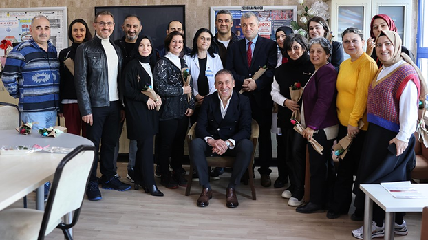 Trabzonspor Teknik Direktörü Abdullah Avcı, Bedri Rahmi Eyüboğlu İlkokulu ve Trabzon Spor Lisesi’ni ziyaret ederek, bu okullarda görev yapan öğretmenlerin gününü kutladı. İlk ziyaretini Bedri Rahmi Eyüboğlu İlkokulu’na yapan Avcı, öğrencilerin yoğun ilgisiyle karşılandı. Yaptığı konuşmada, “Hem eğitim, hem spor, hem de sosyal hayatımızdaki kazanımlarımızda öğretmenlerimizin çok büyük emeği vardır. Bu kıymetli mesleği icra eden öğretmenlerimizin gününü kutluyorum” ifadelerini kullandı. Avcı, daha sonra Trabzon Spor Lisesi’ni ziyaret etti. Aralarında milli sporcuların da bulunduğu öğrencilerle sohbet etti.