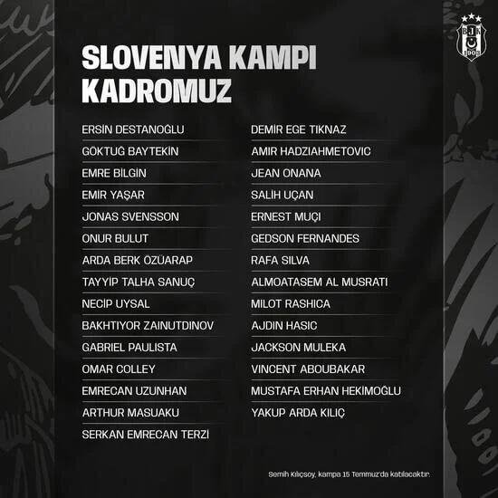 Beşiktaş’ta Semih Kılıçsoy ise 15 Temmuz’da kampa katılacak.