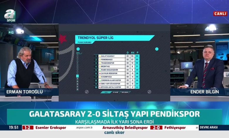 Trendyol Süper Lig’in 33. haftasında Galatasaray, Siltaş Yapı Pendikspor ile karşı karşıya geldi. Mücadelenin ilk yarısının ardından Erman Toroğlu değerlendirmelerde bulundu. GS SPOR HABERLERİDevamı için tıklayınız
