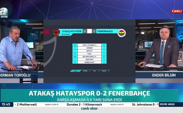 Trendyol Süper Lig’in 28. haftasında Fenerbahçe deplasmanda Atakaş Hatayspor’la karşılaştı ve mücadelenin ilk 45 dakikası 2-0 sona erdi. A Spor yorumcusu Erman Toroğlu, ilk yarıyı değerlendirdi. Toroğlu,…Devamı için tıklayınız