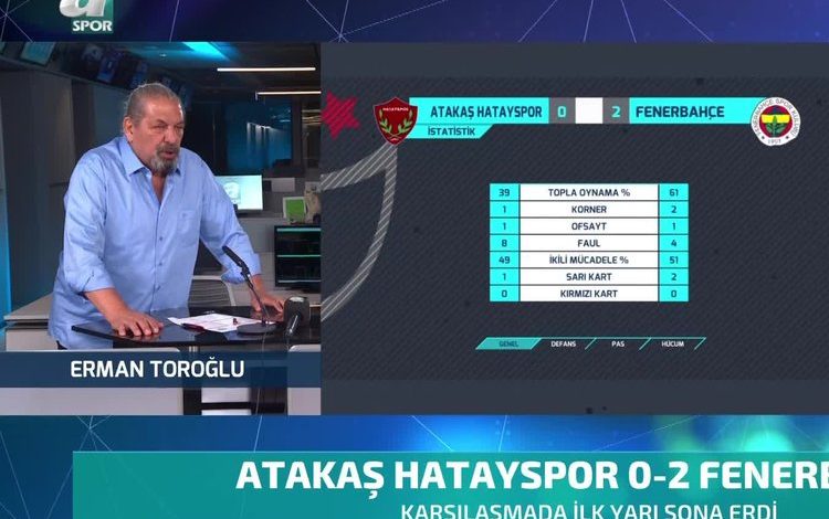 Trendyol Süper Lig’in 28. haftasında Fenerbahçe, Mersin’de Atakaş Hatayspor ile karşı karşıya gelirken ünlü Erman Toroğlu’dan maçın devre arasında dikkat çeken yorum geldi. Ünlü yorumcu, “Fenerbahçe’de…Devamı için tıklayınız