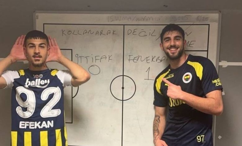 Rams Park’taki Fenerbahçe soyunma odasından Mauro Icardi’nin gol sevincini tekrarlayan Efekan Karayazı, Şanlıurfa’daki maça istinaden paylaştığı fotoğrafta, “….!” ifadelerini kullandı.