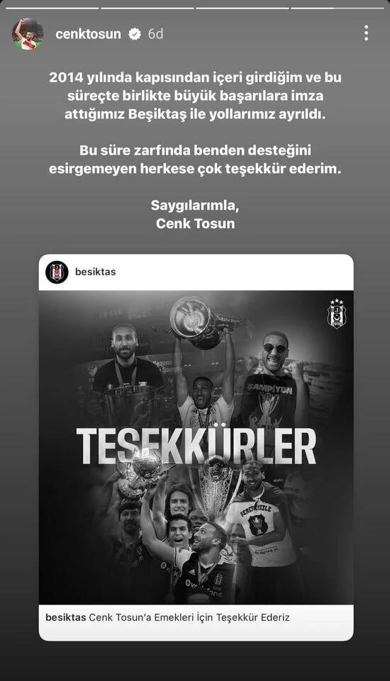 Son olarak milli yıldızdan eski kulübü Beşiktaş için veda mesajı geldi.