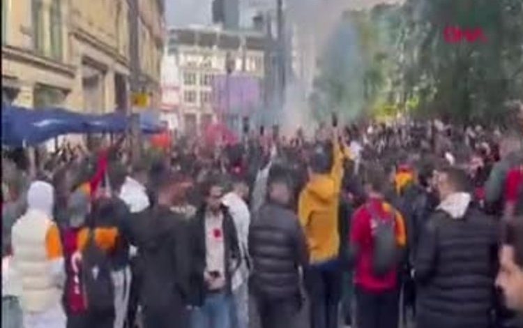 Galatasaray taraftarları Manchester'ı sarı-kırmızı yaptı