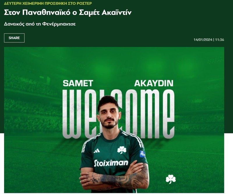 Yunan ekibi bu transferi resmi sitesinden duyurdu.