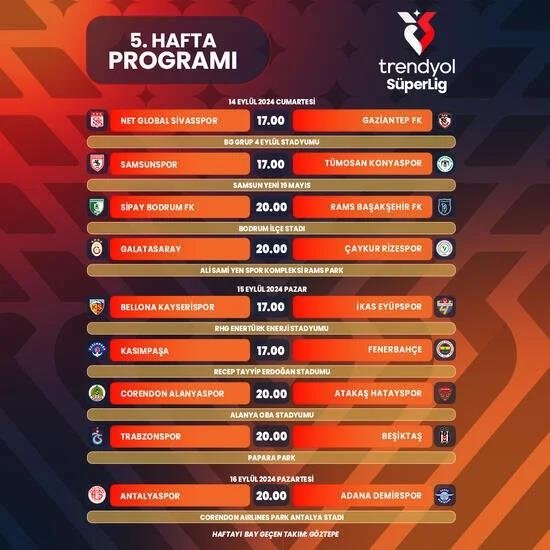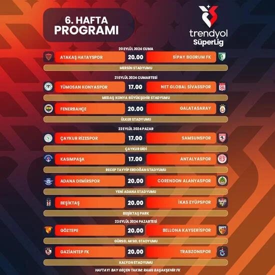 Süper Lig'de oynanacak 5. ve 6. haftanın programı belli oldu! Trabzonspor-Beşiktaş ve Fenerbahçe-Galatasaray derbisi…
