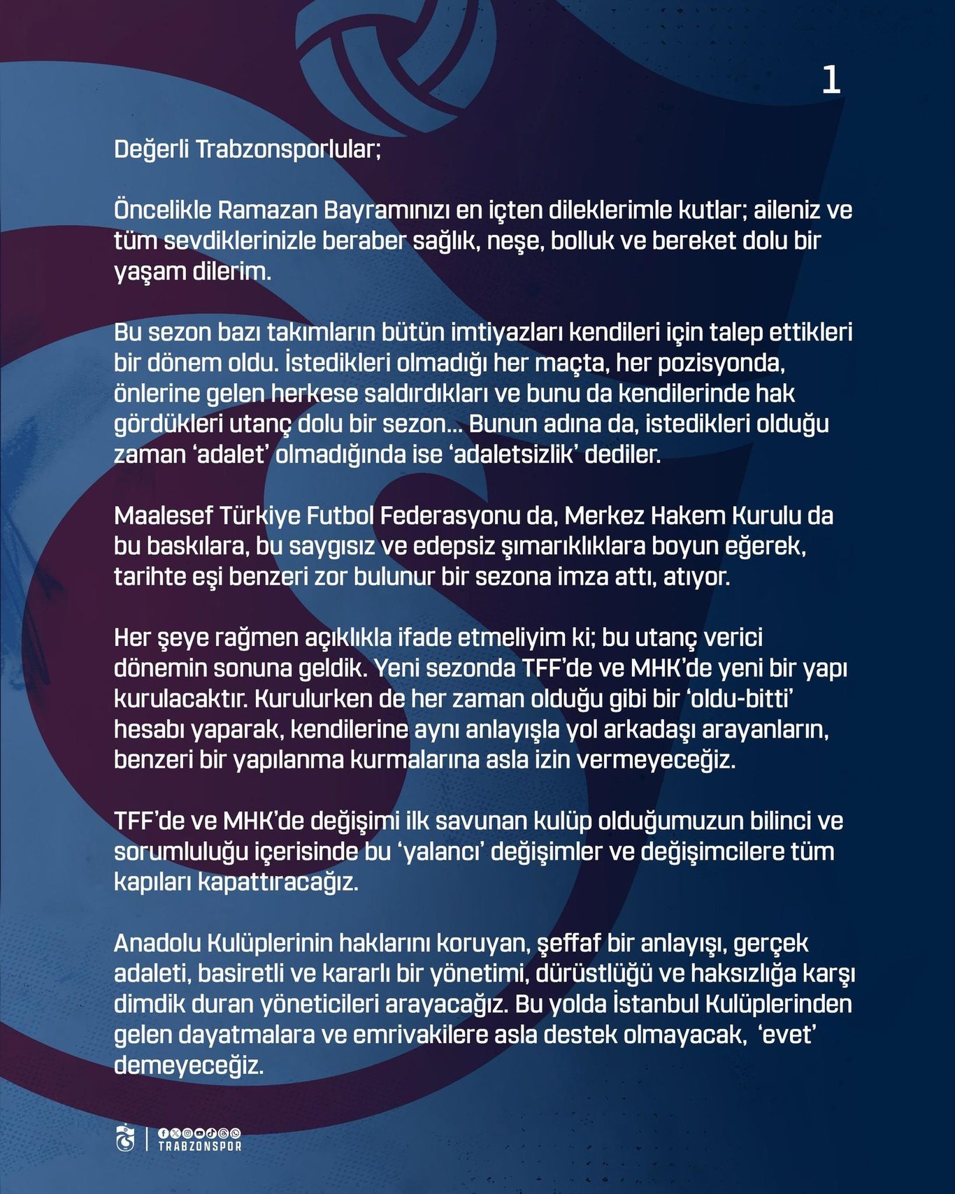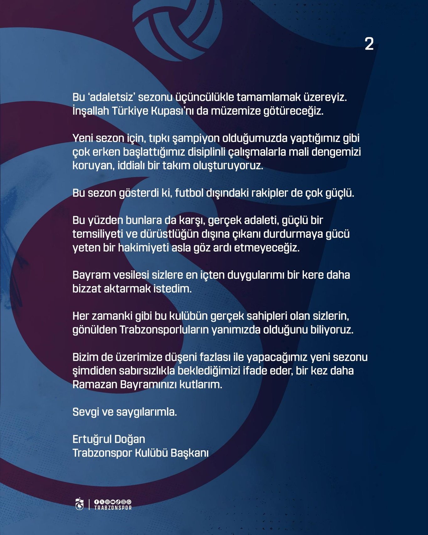 Trabzonspor Kulübü Başkanı Ertuğrul Doğan'dan Ramazan Bayram mesajı. İŞTE DOĞAN'IN SÖZLERİ: Kaynak