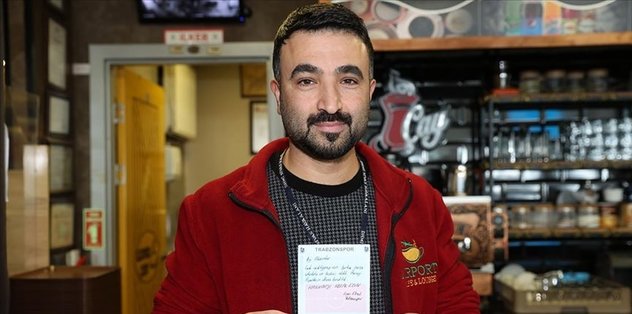 “İyi akşamlar, çok acıktığımız için birkaç parça çikolata ve bisküvi aldık. Parayı pipetlerin altına bıraktık. Hakkınızı helal edin. Eren Elmalı, Trabzonspor.” yazılı notu görünce çok duygulandığını anlatan Yıldırım, “Trabzonspor’umuza, yurdumuzun insanına yakışan bir olay yapmışlar. Burada ihtiyaçlarını karşılamışlar, parasını da fazlasıyla bırakmışlar.” diye konuştu.